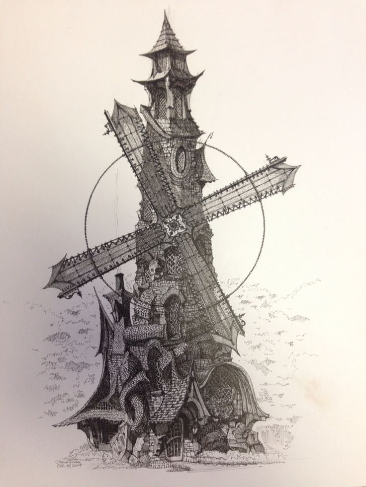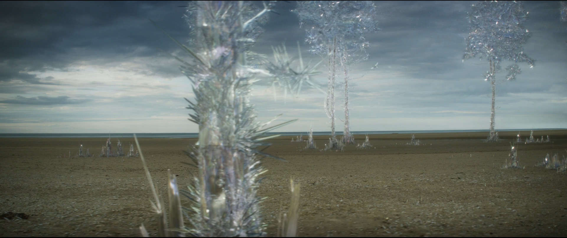 SD: Four metal rods impaling a giant Valko skeleton, shooting into the ground, 30ft tall, 1ft wide. They attract the lightning that is common in the area.