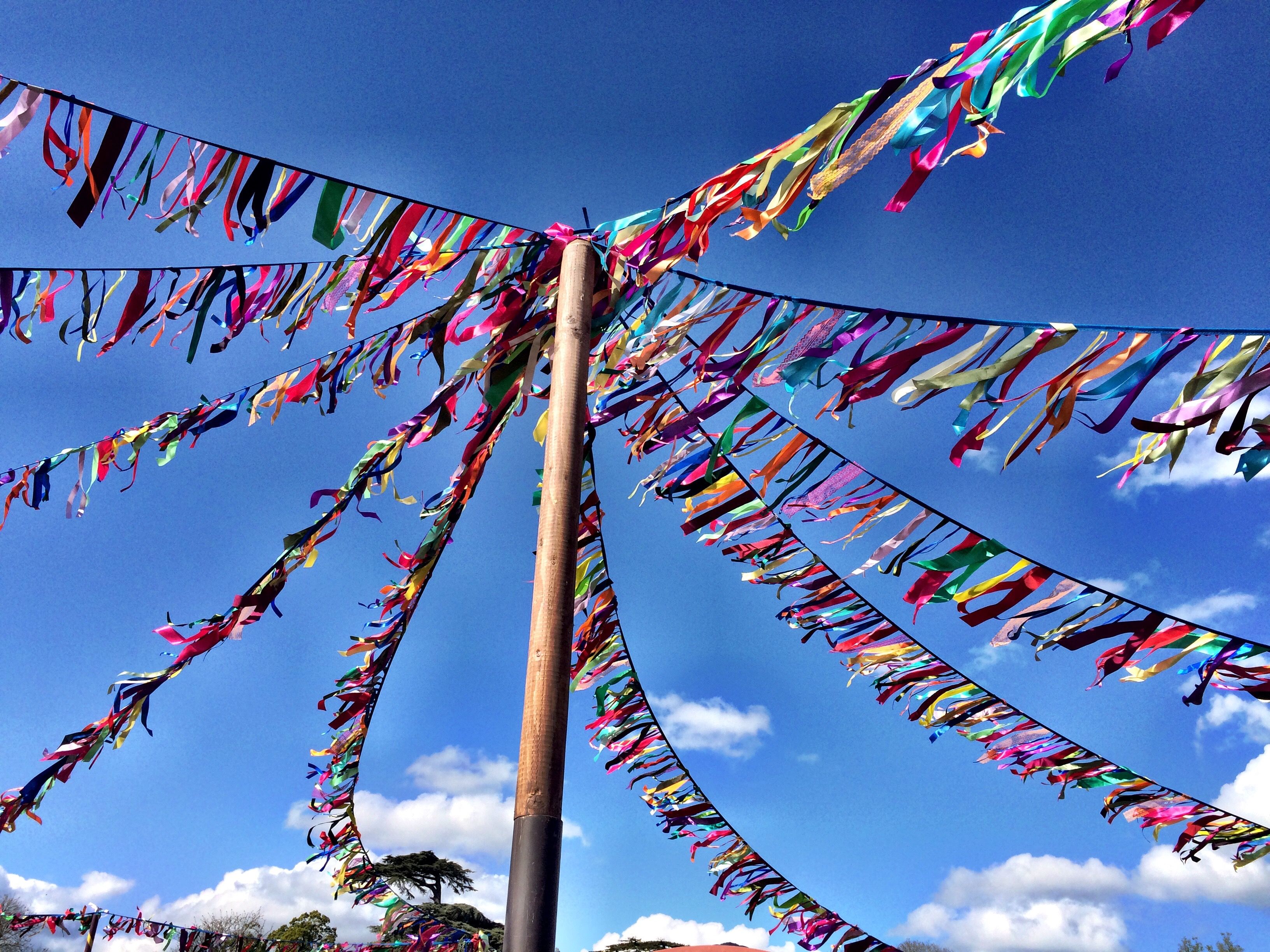 Colossus of black stone, like wildflower station. Draped in a hundred thousand ribbons of all colors. Changing to a mix of warm tones in the sunset, then cool tones after the sun falls.